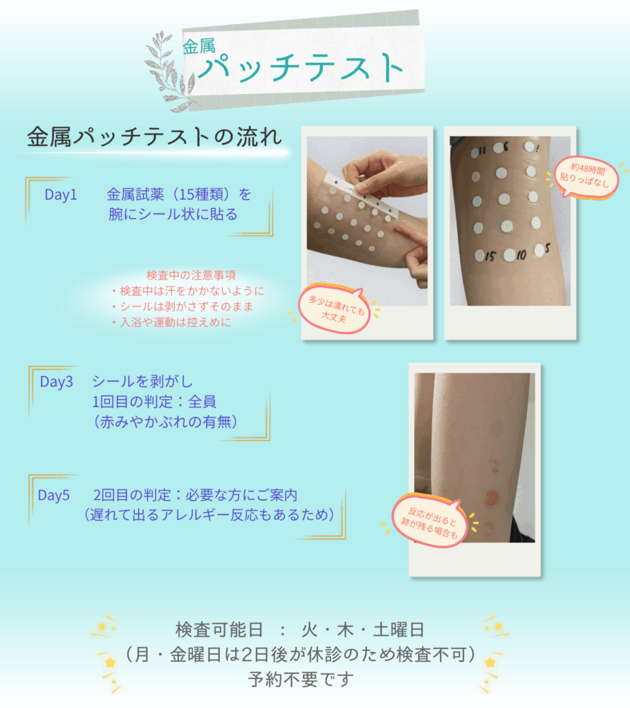 化粧品やヘアカラー、ゴム手袋などのパッチテストも可能です🧴